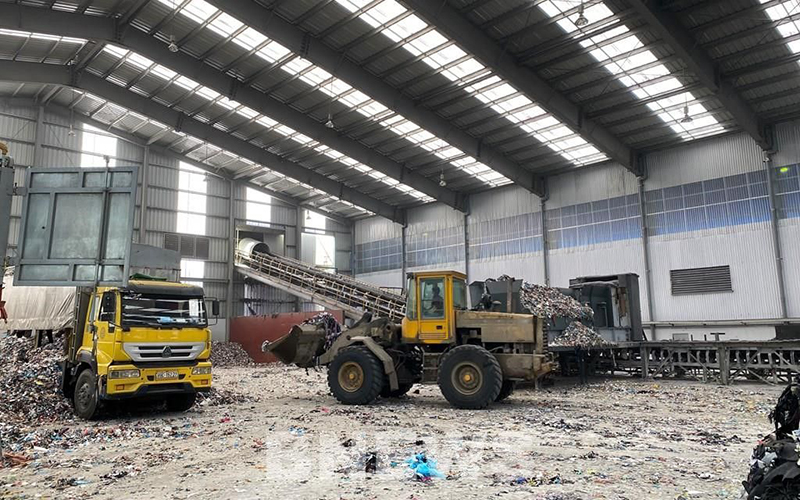 Thu gom rác thải làm nhiên liệu đốt lò tại Vicem Bút Sơn.