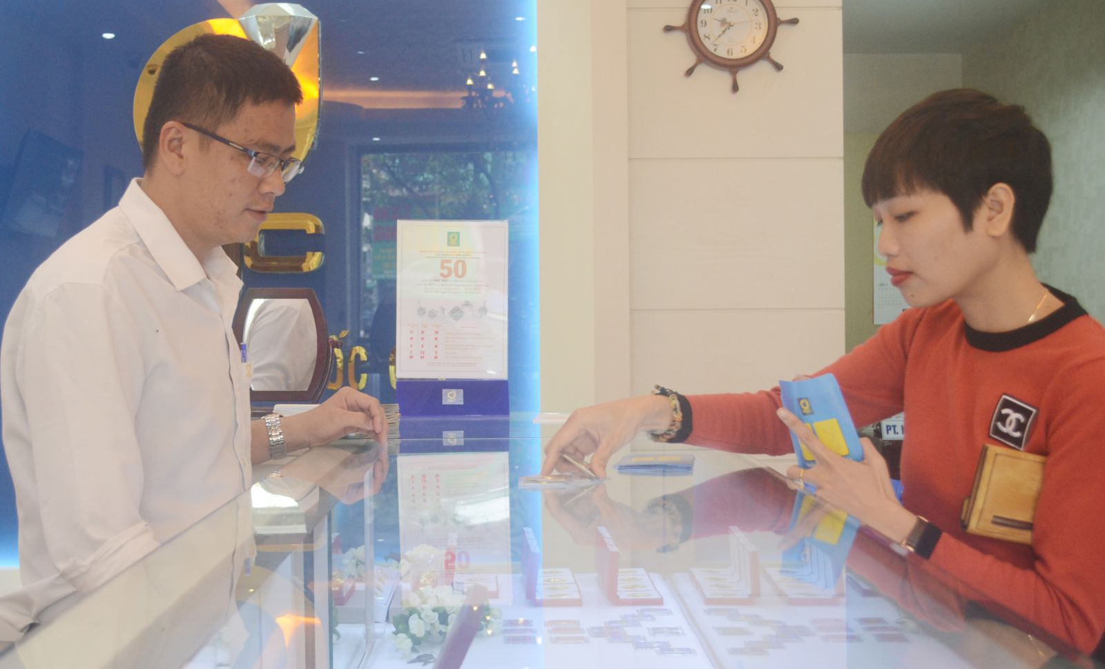 Cửa hàng trưng bày, giới thiệu, mua bán các sản phẩm được chế tác từ vàng của Chi nhánh Công ty TNHH MTV Vàng bạc đá quý Sài Gòn SJC tại Huế ở đường Hùng Vương khá thưa thớt khách trong sáng 18/1. Nhân viên bán hàng cho biết, từ khi mở cửa đến khoảng 10 giờ chỉ có khoảng 3 lượt khách đến trao đổi, mua bán vàng, chủ yếu là vàng miếng và một số sản phẩm hàng nữ trang, thần tài. Trong đó, khách mua chiếm số lượng tuyệt đối và hầu như không có khách bán. Mức giá mua vào được niêm yết tại SJC Chi nhánh Huế là 36.430.000 đồng/lượng và bán ra ở mức 36.750.000 đồng/lượng.