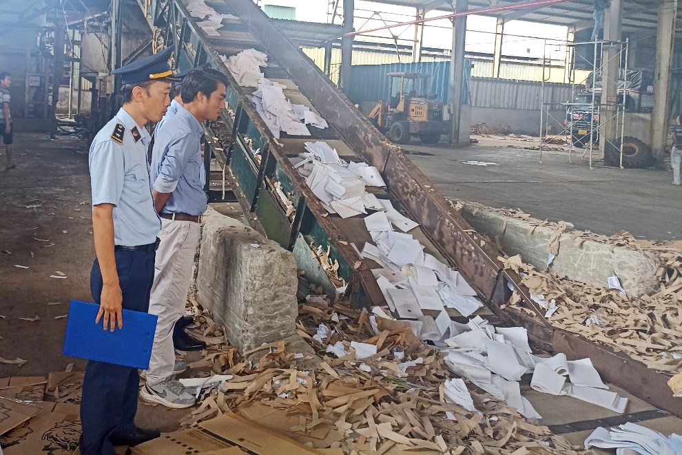 Theo đó, toàn bộ ấn chỉ - biểu mẫu trong hoạt động kiểm tra, xử lý vi phạm hành chính và thực hiện các biện pháp nghiệp vụ của lực lượng QLTT - tính đến 31/1/2022 với trọng lượng gần 1 tấn được nghiền nát tại cơ sở sản xuất giấy Công ty CP Vinh Phát (KCN Phú Bài - TX. Hương Thủy).