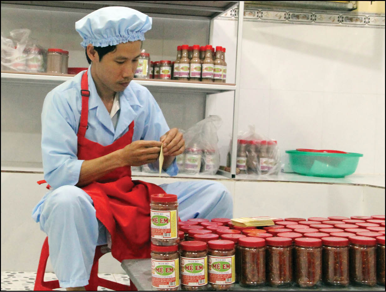 Anh Lê Hạnh Phúc, chủ cơ sở mắm Mệ Em đóng gói sản phầm