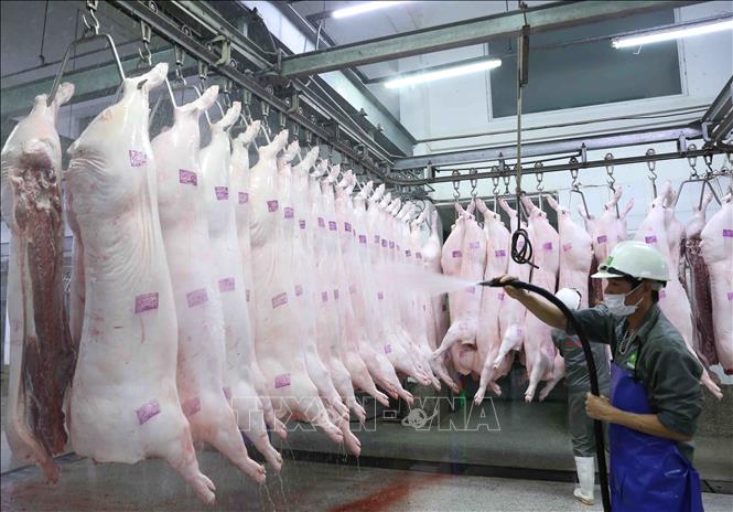 Dây chuyền chế biến thịt lợn tại Công ty Cổ phần Công nghệ thực phẩm Vinh Anh, huyện Thường Tín (Hà Nội). Ảnh minh họa: Vũ Sinh/TTXVN