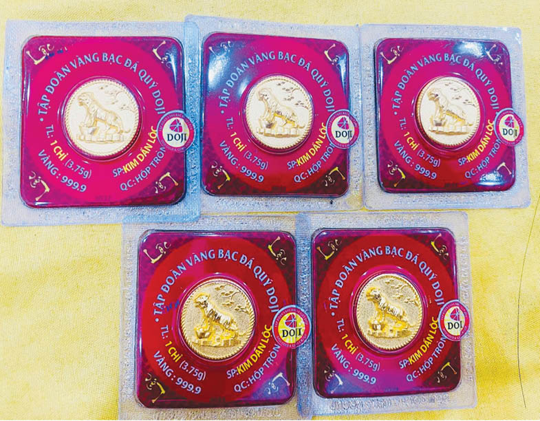 Theo ghi nhận, các doanh nghiệp kinh doanh vàng đều cháy hàng vàng ép vỉ với hình tượng con giáp và thần tài. Trong đó, hệ thống 3 cửa hàng của DOJI báo hết hàng Kim Dần chiêu tài, Kim Dần phát lộc vào lúc 8h sáng; các sản phẩm Âu vàng Phúc Long, Thần tài thịnh vượng cũng hết hàng vào lúc 10h sáng. Với hệ thống cửa hàng của PNJ, các sản phẩm set vàng 6 miếng; 3 miếng đã hết hàng từ phiên giao dịch cuối ngày 9/1 âm lịch do phần lớn khách hàng đều đặt hàng online trước đó và đến cuối giờ trưa, các sản phẩm vàng ép vỉ khác cũng hết hàng.