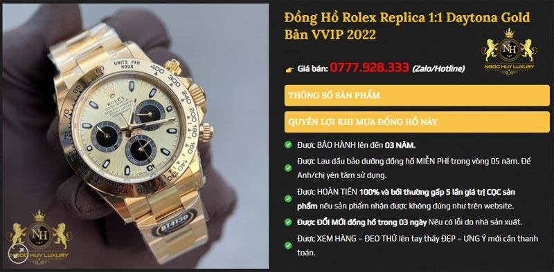 Một trong những mẫu đồng hồ rất được ưa chuộng hiện nay trên thế giới chính là đồng hồ Rolex. Nhưng vì giá thành của đồng hồ chính hãng rất cao nên nhiều người lựa chọn mua đồng hồ Rolex 1:1 để trải nghiệm chất lượng ngang bằng. Nếu bạn cũng đang có ý định tìm hiểu và mua đồng hồ replica, hãy đến ngay cửa hàng Ngọc Huy Luxury để mua được đồng hồ chuẩn nhất với giá thành ưu đãi nhất nhé.