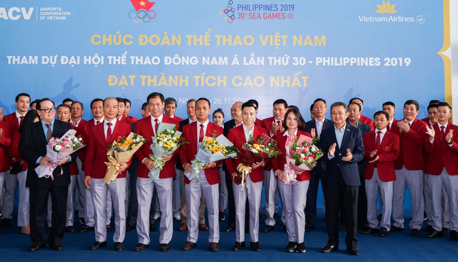 Ngày 26/11, Vietnam Airlines phối hợp cùng Tổng cục Thể dục Thể thao (TDTT) tổ chức tiễn đoàn Thể thao Việt Nam tham dự SEA Games 30 tại tại Nhà ga T2, Cảng hàng không quốc tế Nội Bài nhằm cổ vũ tinh thần cho Đoàn thể thao Việt Nam thi đấu, mang vinh quang về cho đất nước.
