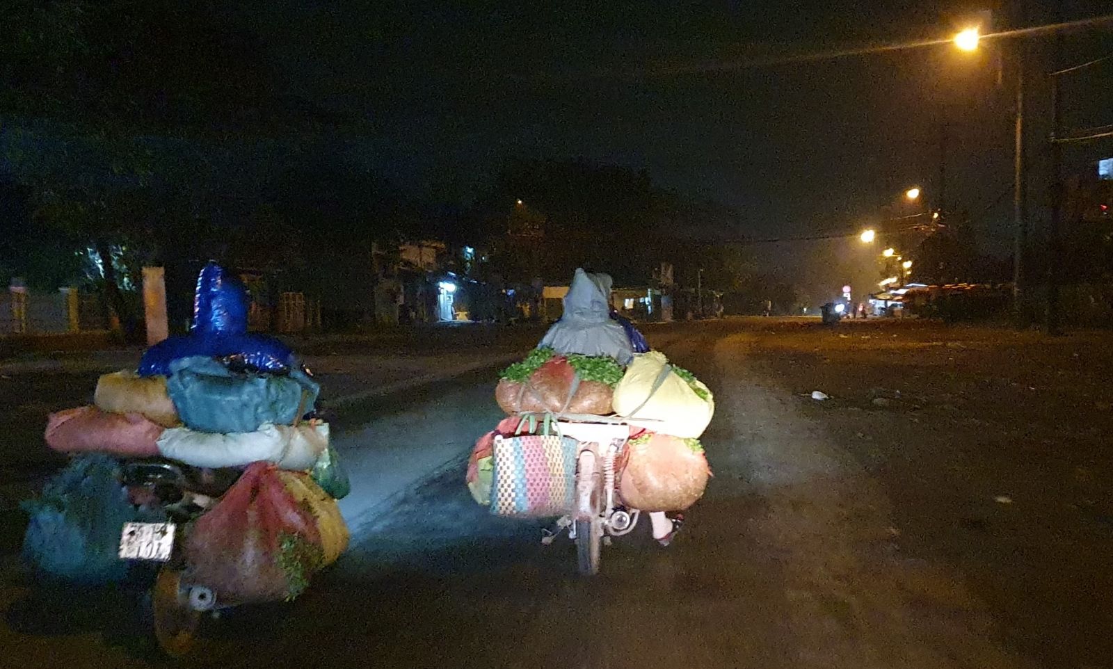 Khoảng 2h30 sáng, rau được vận chuyển đến chợ đầu mối Phú Hậu