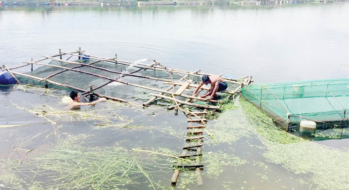 Từ các đợt nắng nóng vừa qua, ông Huy đã thu hoạch tỉa những con cá trắm đạt kích cỡ thương phẩm, vừa tránh thiệt hại vừa đảm bảo mật độ và ô xy trong lồng. Các lồng cá hiện nay còn khoảng một nửa, một số còn 20-30% sản lượng. Hầu hết cá có trọng lượng từ 2-4kg, tuy còn nhỏ nhưng ông Huy quyết định thu hoạch toàn bộ. Chỉ những con quá nhỏ có thể giữ lại nuôi, kèm theo phương án giằng neo lồng an toàn.