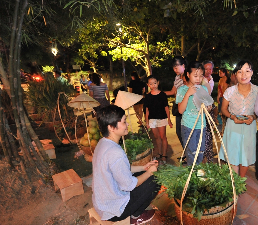 Hình thức cơ bản như “Chợ quê ngày hội” về đêm nhưng quy mô nhỏ hơn, chợ đêm với không gian tập trung quanh các tuyến đi bộ khu vực cầu ngói, nhà nông cụ cùng những hoạt động như: buôn bán, ẩm thực, hội bài chòi, các trò chơi dân gian, trình diễn đạp nước, tát nước, cất rớ, đan đát, làm các loại bánh... thu hút hàng ngàn lượt người tham dự.