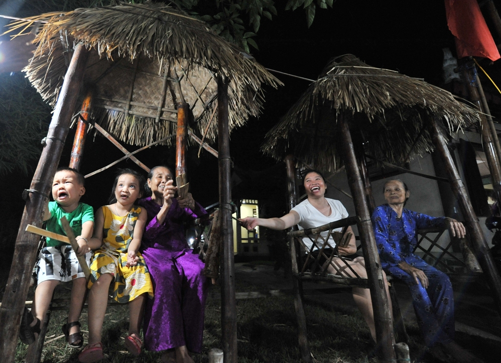 ... hay bài chòi. Trong ảnh là một chú nhóc òa khóc khi chưa được phát những quân bài để cùng chơi với bà và chị