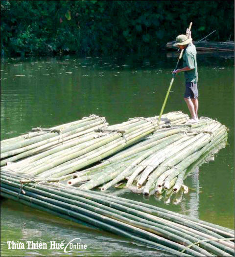 Tại bến ven sông Ô Lâu, bè của anh Bính được kết từ 50-70 bó lồ ô kẹp thuyền công suất máy D24 ở giữa đẩy về xuôi. Quãng đường dài khoảng 60km từ thượng nguồn chạy men theo sông Ô Lâu rồi qua Mỹ Chánh (Quảng Trị), đến Vân Trình (xã Phong Bình) rồi về Điền Lộc, xuôi dòng Cửa Lác (xã Điền Hòa) mất trọn một ngày trên sông nước. Người buôn đi từ sáng tinh mơ, đến ngửa bàn tay không thấy gì mới về. Cũng có khi, thuyền đẩy “hàng” về tận xã Phú Xuân để bỏ mối sỉ cho thương lái tại đây. Trên đường đi, trước khi hòa từ con nước ngọt Ô Lâu ra vùng nước lợ Tam Giang, hễ ai có nhu cầu mua anh Bính đều ghé bán. “Lồ ô dài 3 đến 9m, giá từ 3-20 nghìn đồng/cây, tùy loại. Mỗi chuyến đi trừ chi phí tiền dầu khoảng 500 nghìn đồng, tính ra bình quân hai vợ chồng tui kiếm được 400 nghìn đồng/ngày”, anh Bính kể.