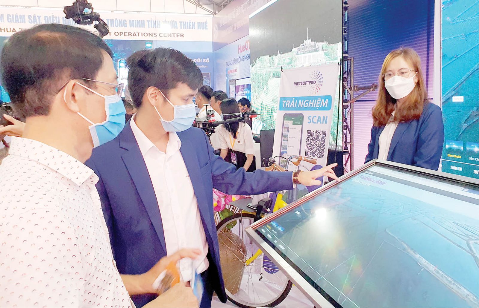 Khách tham quan trải nghiệm ứng dụng số tại Tuần lễ Chuyển đổi số Huế 2021