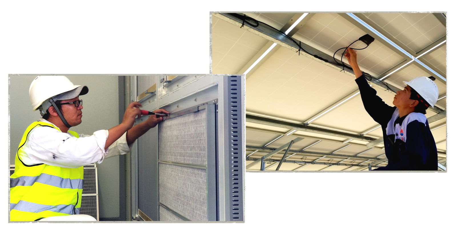 Nhân viên Nhà máy Điện mặt trời TTC Phong Điền kiểm tra các thiết bị trước khi vận hành