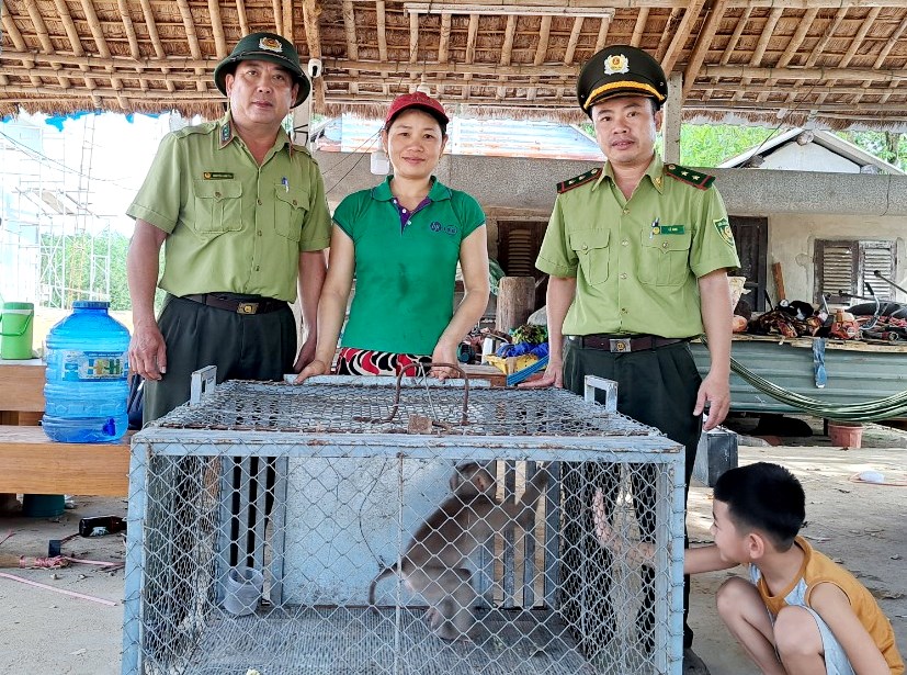 Mong muốn cá thể khỉ đuôi lợn này được sống ở môi trường rừng tự nhiên, bà Sửu đã điện báo cho Hạt Kiểm lâm TX. Hương Thủy để giao nộp.