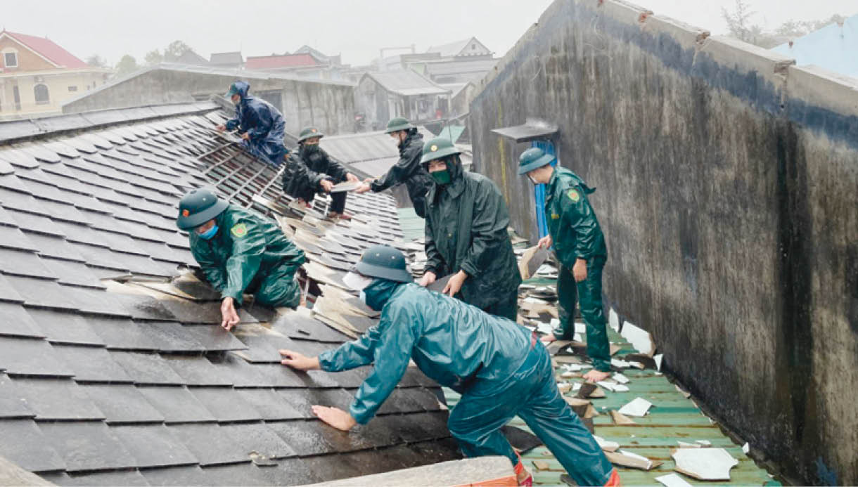 Các lực lượng hỗ trợ người dân Vinh Hiền (Phú Lộc) sửa chữa lại nhà cửa hư hỏng do gió lốc