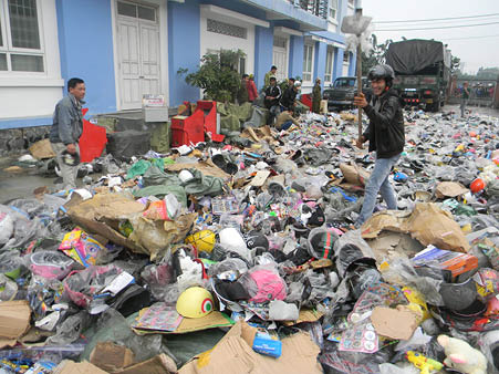 Hàng hóa tiêu hủy được cán nát không còn khả năng sử dụng trước khi đưa vào hố chôn lấp hoặc đốt cháy