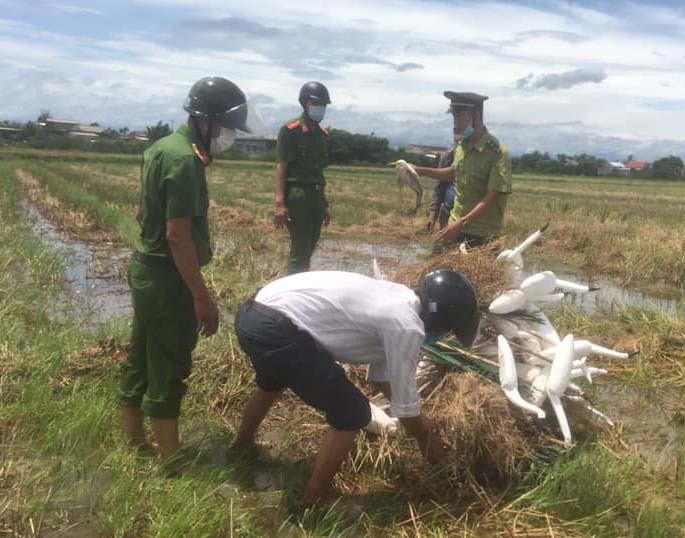 Lực lượng kiểm lâm, công an của các đơn vị trên đã tháo gỡ và tiêu hủy hơn 200 con cò giả bằng nhựa xốp, khoảng 2.000 que nhựa dính keo; cứu hộ 30 cá thể cò và thả về môi trường tự nhiên tại khu vực rừng ngập mặn rú Chá.
