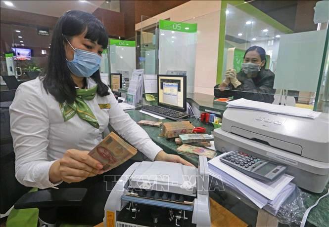 Khách hàng giao dịch tại hội sở chính Vietcombank, 198 Trần Quang Khải, Hà Nội. Ảnh minh họa: Trần Việt/TTXVN