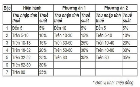 Sau 10 năm áp dụng Luật Thuế thu nhập cá nhân (TNCN), Bộ Tài chính vừa đề xuất hai phương án thay đổi biểu thuế TNCN. Bộ này đưa ra 2 phương án, trong đó phương án 1, bao gồm 5 bậc thuế. Tuy nhiên, sau khi tính toán, phương án này sẽ giảm thu ngân sách khoảng 1.300 tỷ đồng/năm, và đề xuất phương án 2.