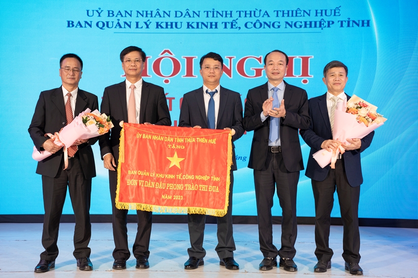 Dịp này, Phó Chủ tịch UBND tỉnh Phan Quý Phương trao cờ thi đua đơn vị dẫn đầu năm 2023 cho Ban quản lý KKT, CN tỉnh và bằng khen của Chủ tịch UBND tỉnh cho các tập thể, cá nhân hoàn thành xuất sắc nhiệm vụ và có nhiều đóng góp cho sự phát triển của đơn vị. Cũng tại hội nghị, Ban quản lý KKT, CN tỉnh đã trao giấy chứng nhận cho 4 nhà đầu tư với tổng vốn đăng ký hơn 1.000 tỷ đồng.