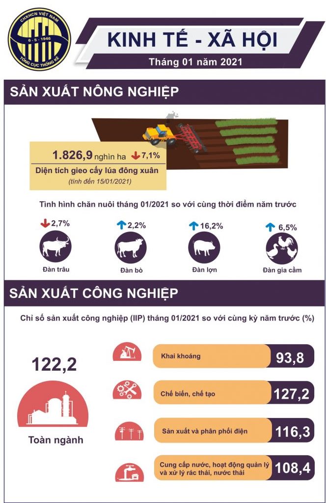 Tổng cục Thống kê vừa chính thức công bố các số liệu tình hình kinh tế - xã hội tháng 1/2021.