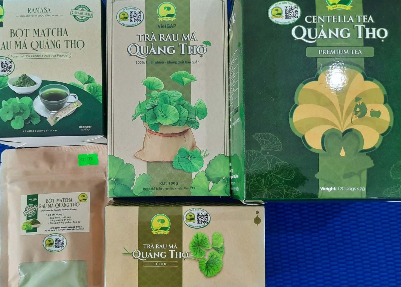 Các sản phẩm trà rau má được gắn tem truy xuất nguồn gốc