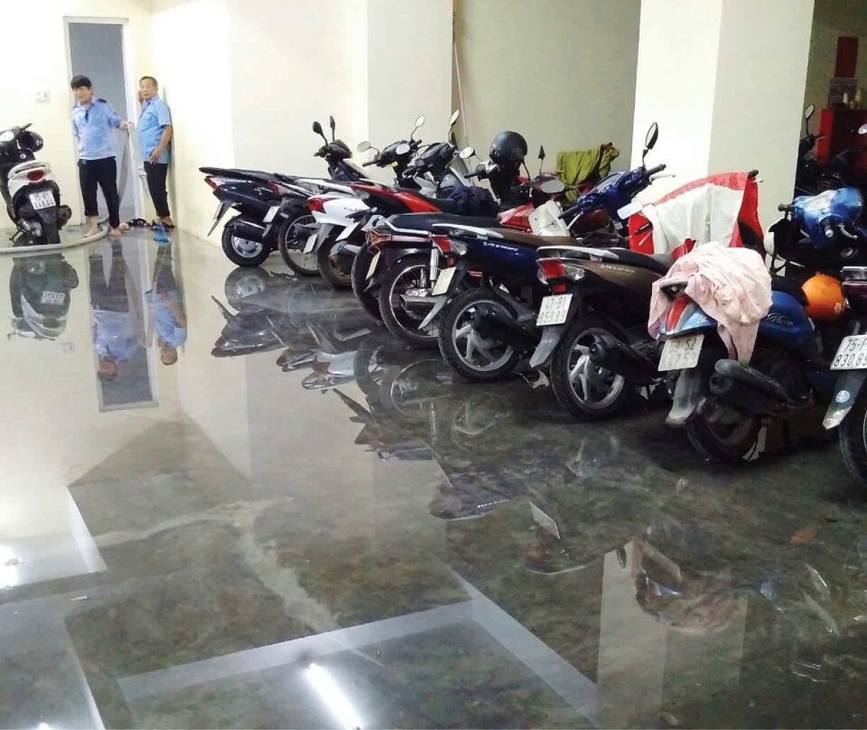 HNN - Do đường ống thu gom nước thải chưa được đấu nối vào hệ thống thu gom nước thải chung, tại các chung cư (CC) ở phường Xuân Phú (TP. Huế) xảy ra tình trạng nước thải chảy tràn lên nền nhà để xe và một số khu vực.