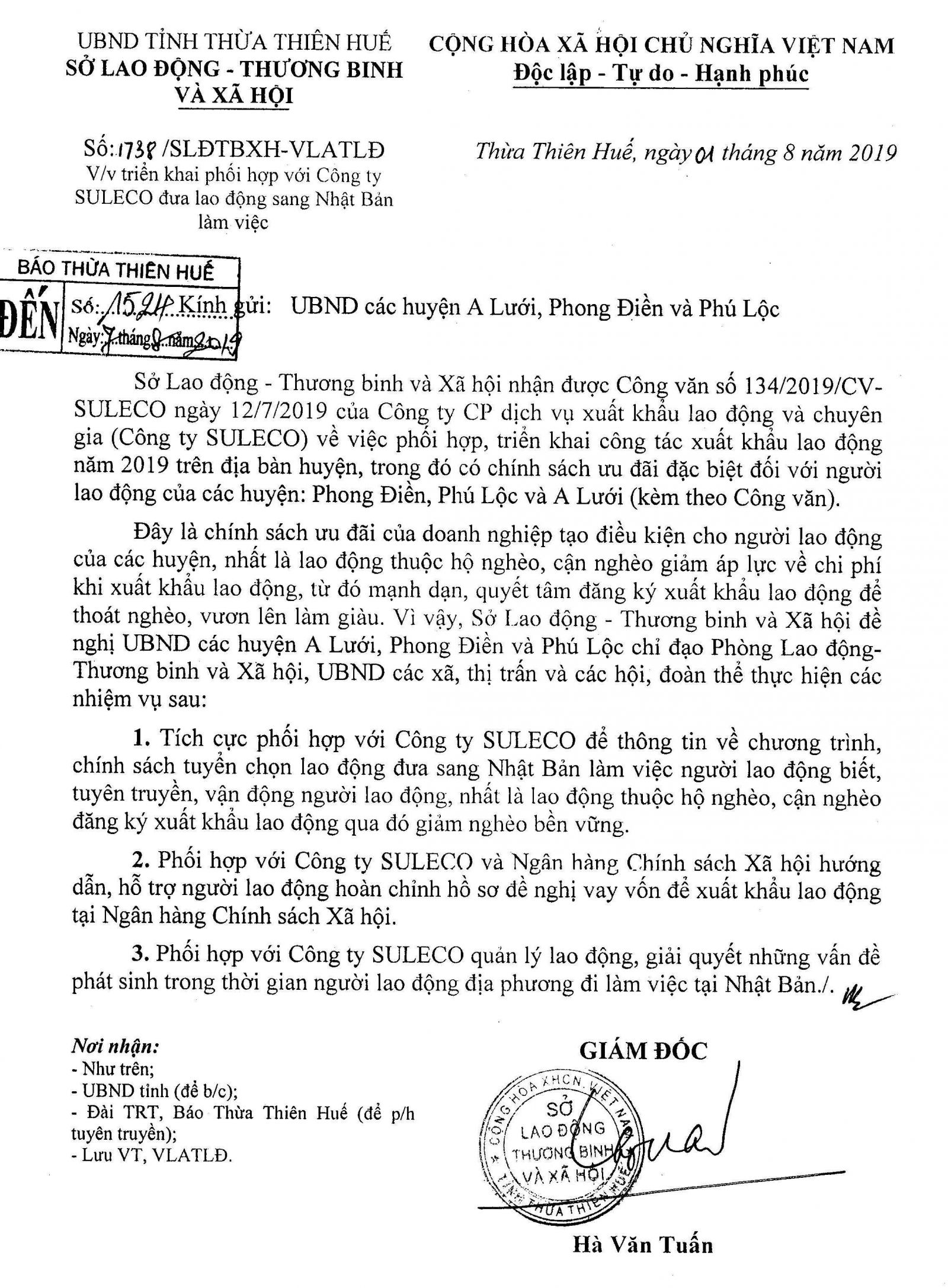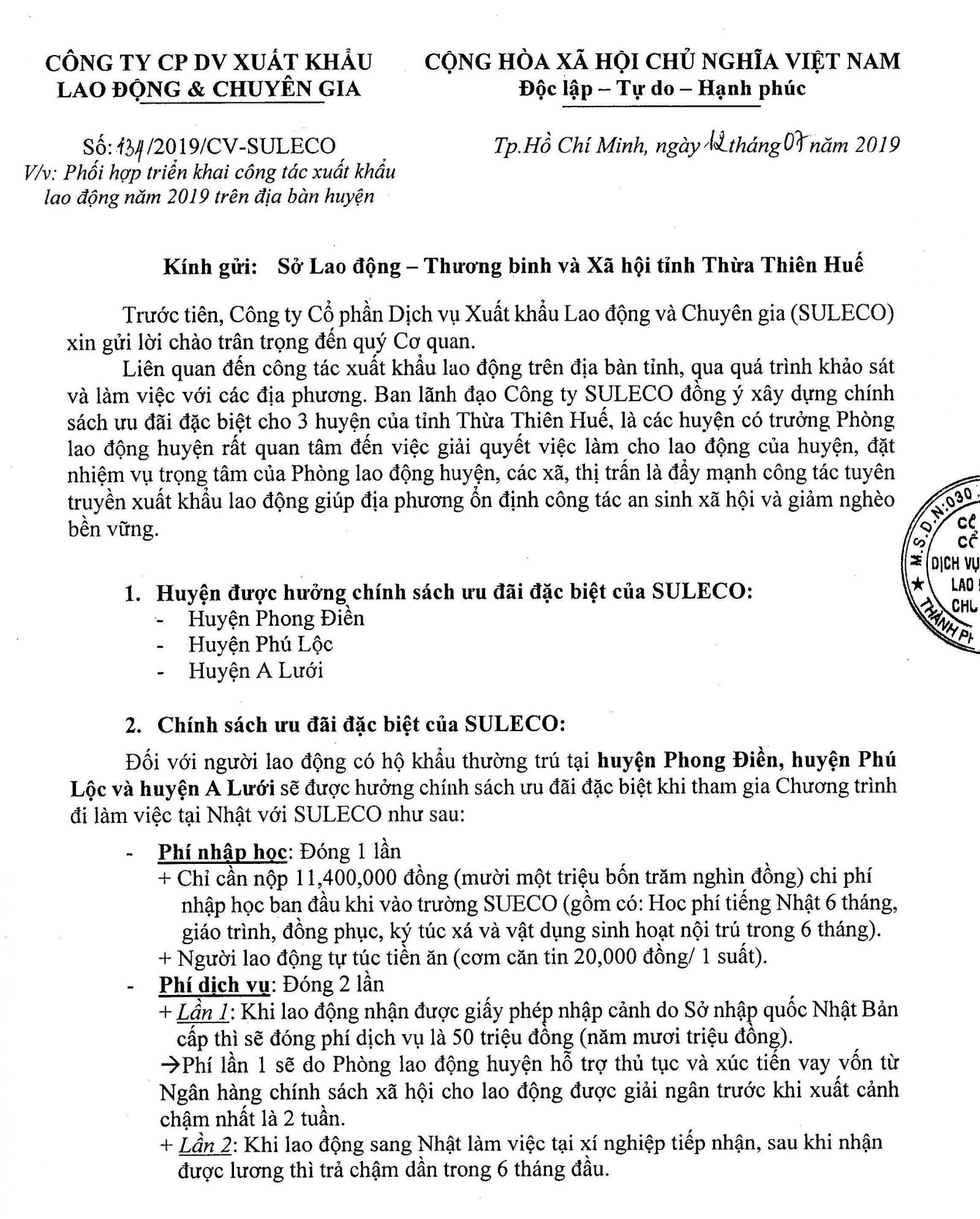 Triển khai phối hợp với Công ty SULECO đưa lao động Việt Nam sang Nhật Bản làm việc