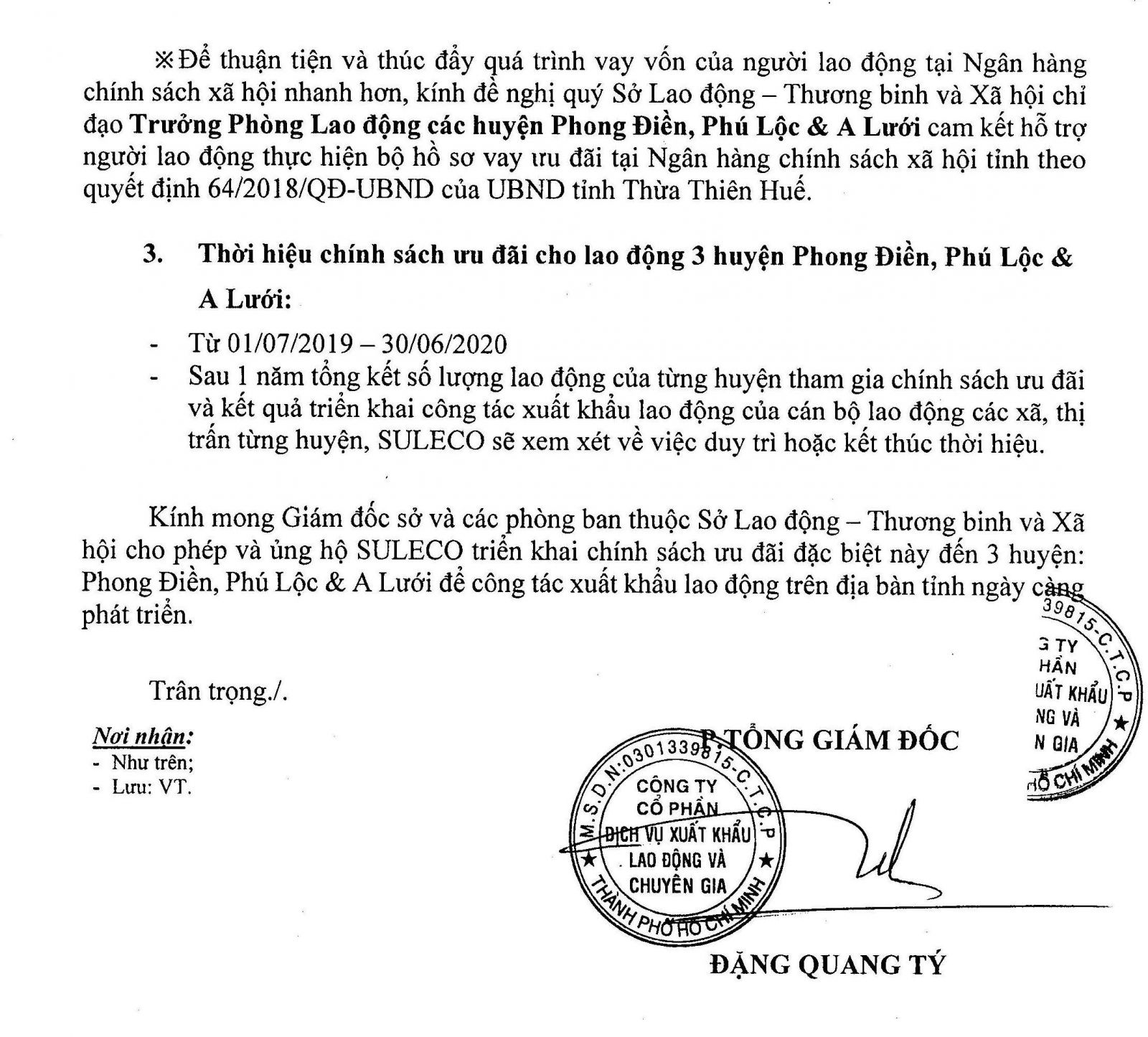 HNN.VN - Đây là chính sách ưu đãi của DN nhằm tạo điều kiện cho người lao động các huyện, nhất là lao động thuộc diện hộ nghèo, cận nghèo nhằm giảm áp lực về chi phí xuất khẩu lao động...