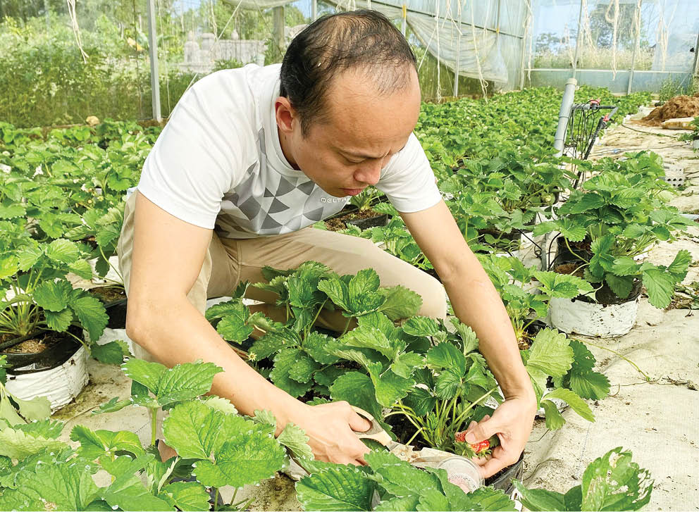 Đam mê mãnh liệt với nông nghiệp công nghệ cao, trước đó, anh Trương Như Hải mạnh dạn đầu tư xây dựng nhà kính, ứng dụng kỹ thuật tiên tiến của Israel để trồng dưa lưới với diện tích 1.300m2. Nhưng với đặc tính thích nghi điều kiện khí hậu ấm áp, khô ráo, đầy đủ ánh nắng, dưa lưới chỉ dễ trồng trong những tháng khô ráo, ít mưa. Ngược lại, ở Huế, khi thời tiết lạnh, trời âm u kéo dài, không chỉ ảnh hưởng đến tốc độ phát triển, dưa lưới còn dễ bị sâu bệnh phá hoại và cho năng suất thấp. “Bởi thế, tôi nghĩ đến dâu tây. Tuy không phải là loại cây dễ trồng, nhưng khi tìm nguồn giống thích hợp, hướng cho cây thuần thời tiết, việc trồng và thu hoạch dâu tây ổn định đã không còn là điều xa vời”, anh Hải nói.