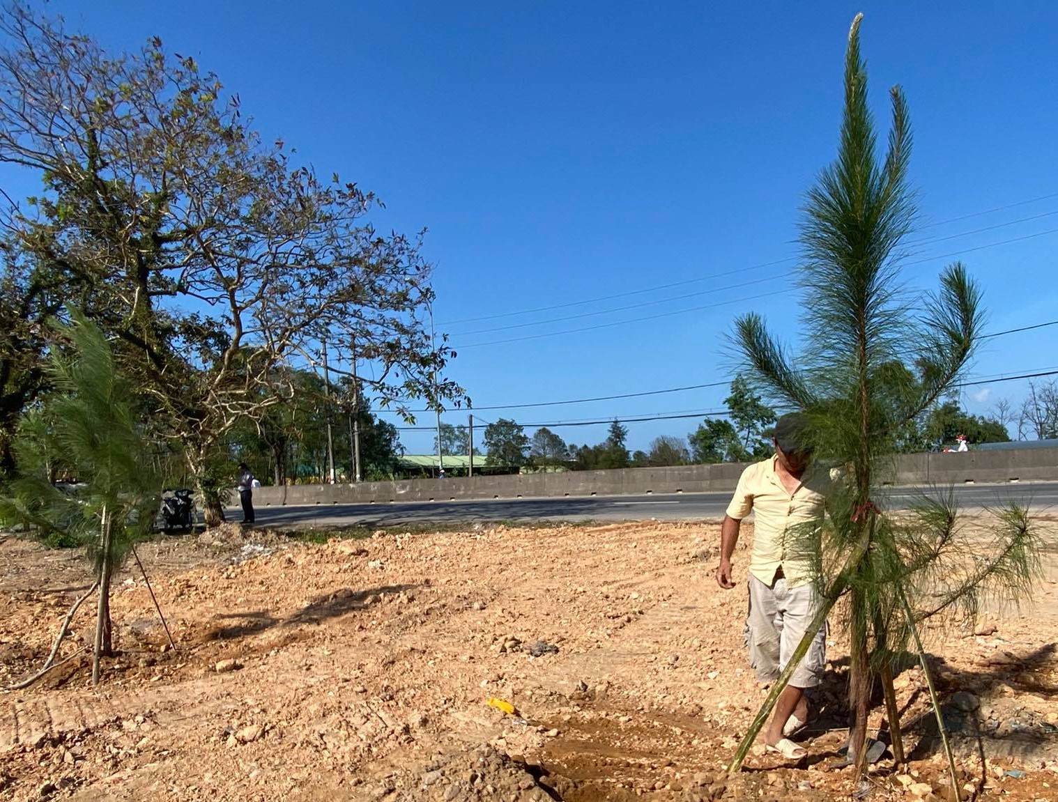 Cây thông Caribe vừa được trồng tại khu vực đường vào sân bay Quốc tế Phú Bài