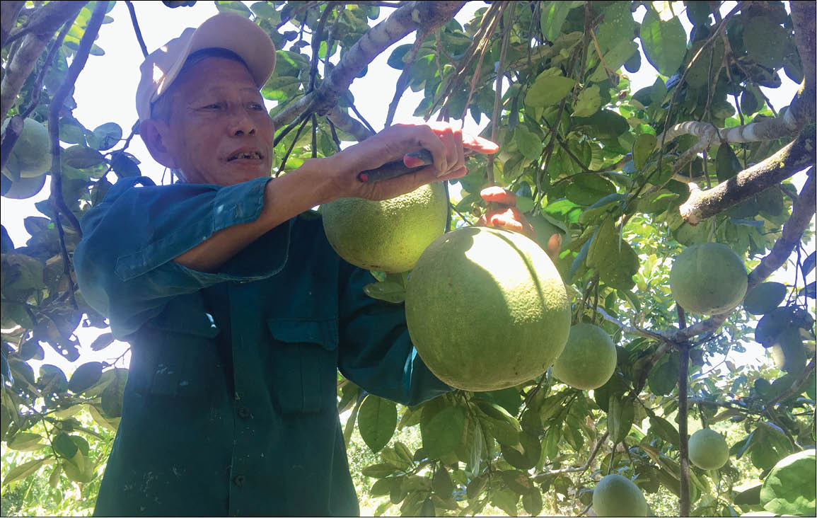 Vườn bưởi da xanh đến kỳ thu hoạch của ông Nguyễn Quốc Trung