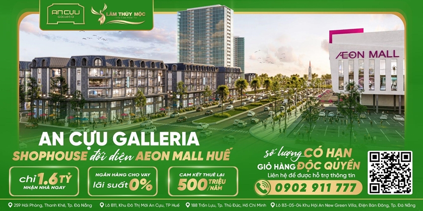 Lâm Thủy Mộc tự hào là đơn vị phân phối độc quyền của dự án shophouse An Cựu Galleria, chỉ còn vài căn cuối cùng, đăng ký nhận thông tin qua số hotline 0902.911.777 để nhận thông tin chi tiết.