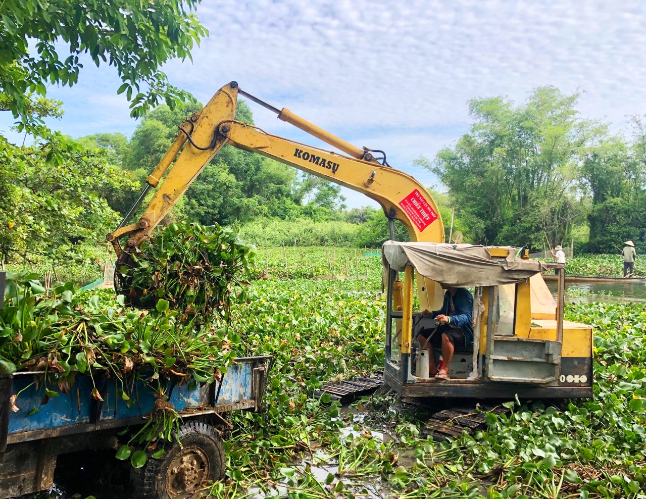 Trục vớt bèo trên sông Lợi Nông