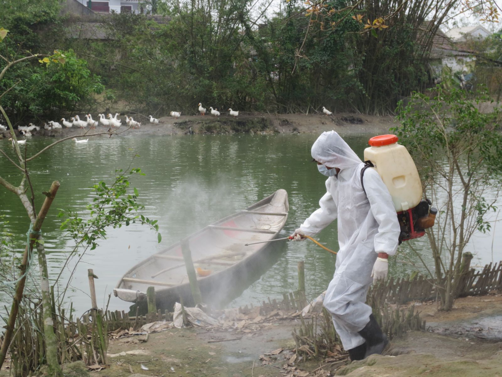 Tiêu độc khử trùng một khu gia trại nuôi gia cầm ở Quảng Điền