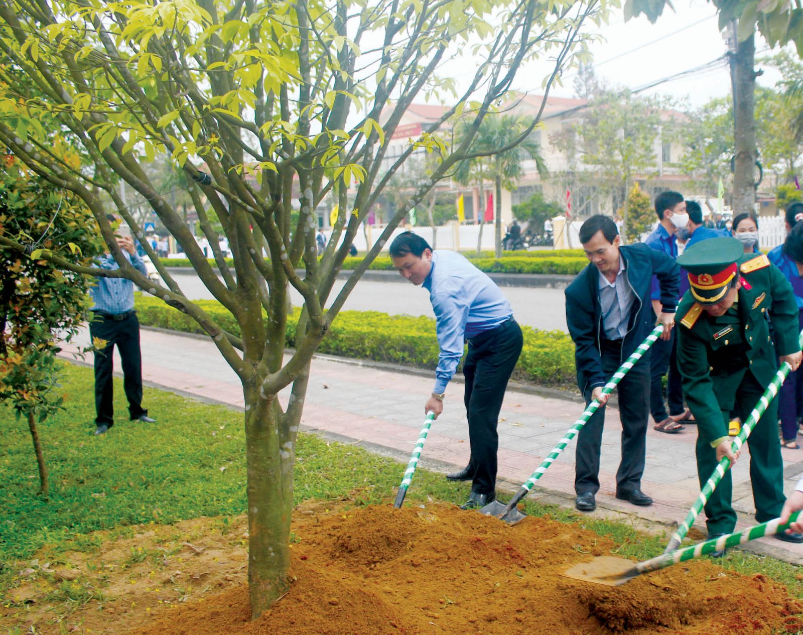 Lãnh đạo huyện Quảng Điền trồng mai vàng trước cơ quan, công sở