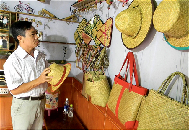 Nhiều sản phẩm lưu niệm và quà tặng được sản xuất từ sợi cỏ bàng. Ảnh: Thanh Hương