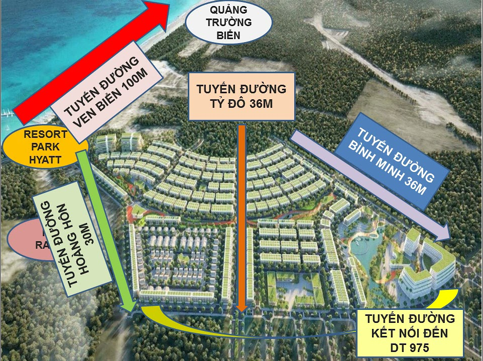 Các tuyến đường từ bãi Trường giao cắt với DT 975, DT46 tới cảng Vịnh Đầm và Bãi Sao theo trục giao thông Đông - Tây rút ngắn khoảng cách di chuyển đến 10km.