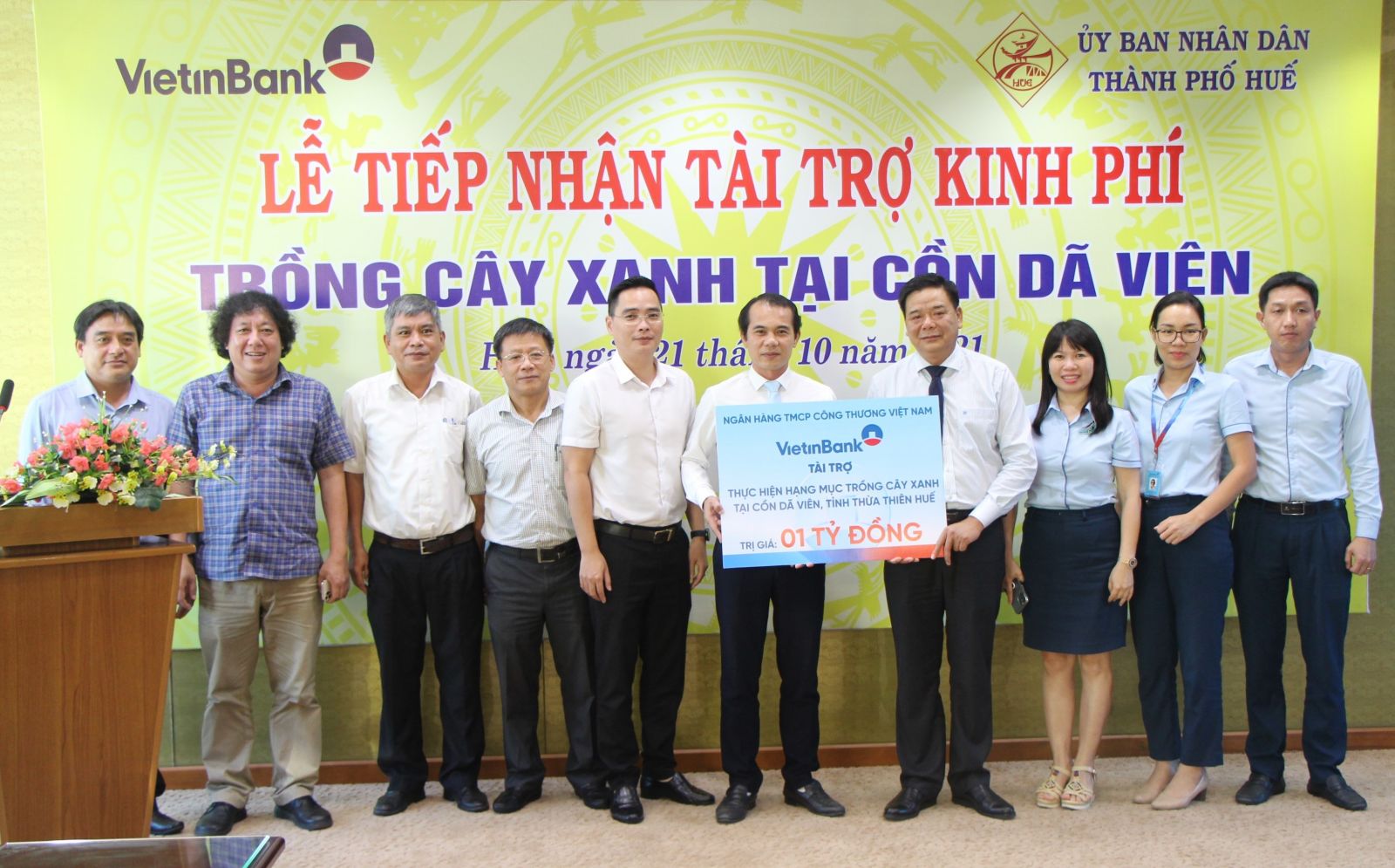 Lãnh đạo TP. Huế tiếp nhận 1 tỷ đồng từ Vietinbank để trồng cây xanh tại Cồn Dã Viên