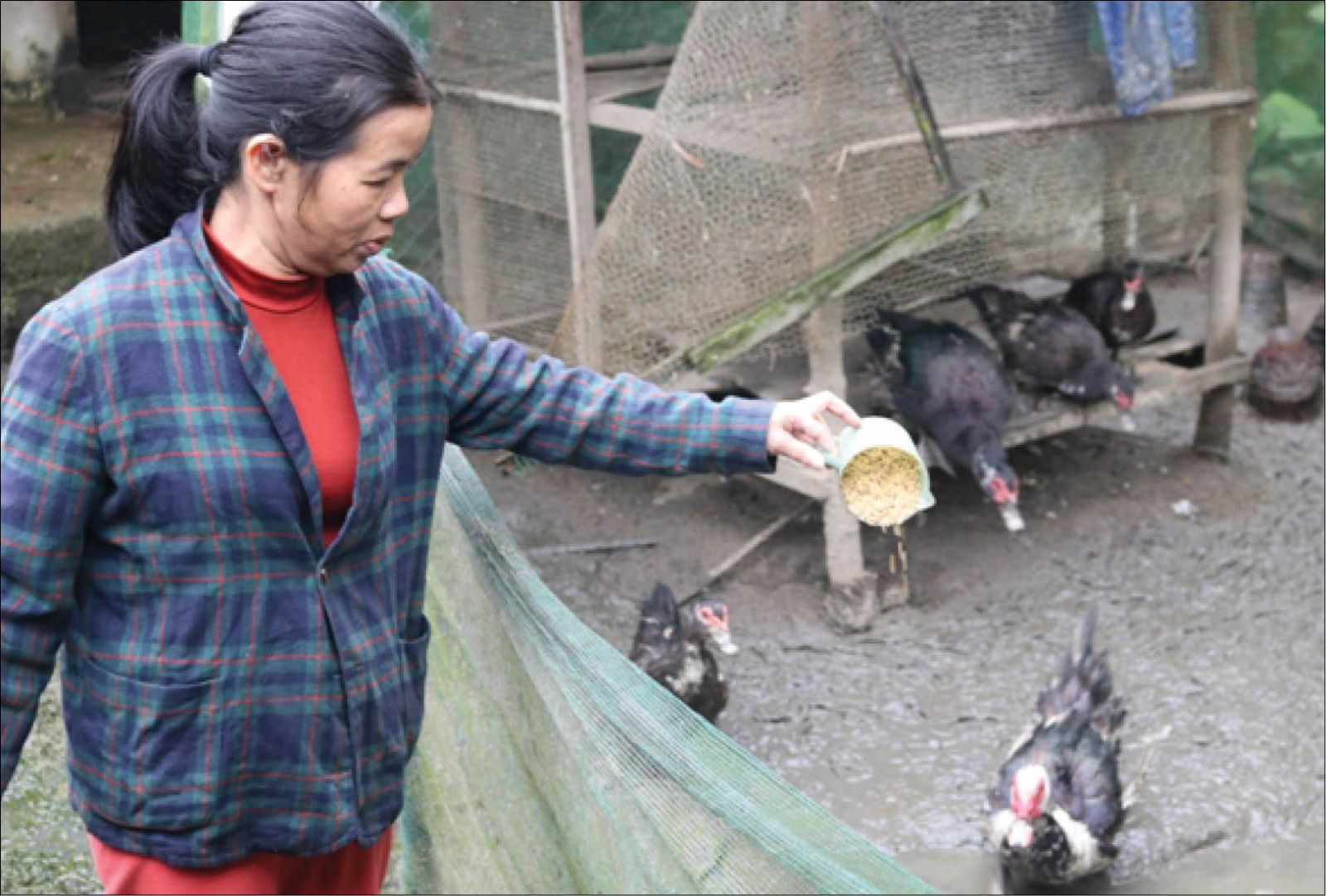 Chị Phạm Thị Cúc, một tronng những phụ nữ nghèo sử dụng vốn vay hiệu quả với việc chăn nuôi heo và các loại gia cầm