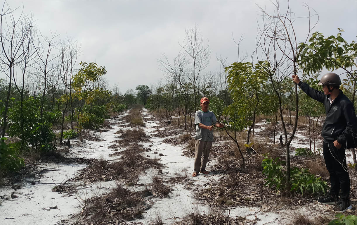 Diện tích rừng trồng của người dân cách khu vực mỏ khoảng 100m bị chết khô