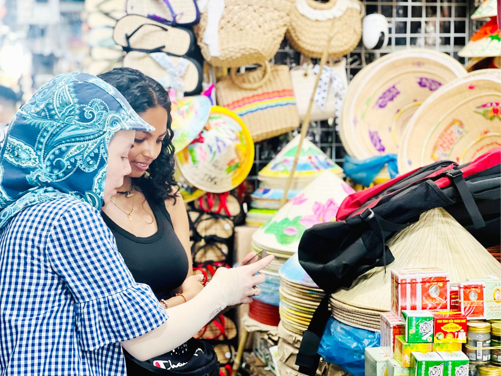Du khách nước ngoài mua sắm tại chợ Đông Ba. Ảnh: MC