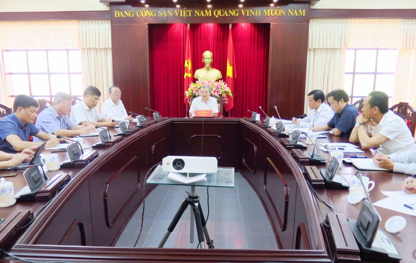 Làm việc với đoàn có các ông: Lê Trường Lưu, Ủy viên Trung ương đảng, Bí thư Tỉnh ủy, Chủ tịch HĐND tỉnh; Phan Ngọc Thọ, Phó Bí thư Tỉnh ủy, Chủ tịch UBND tỉnh, Trưởng đoàn Đại biểu Quốc hội tỉnh và đại diện các sở, ngành, địa phương.