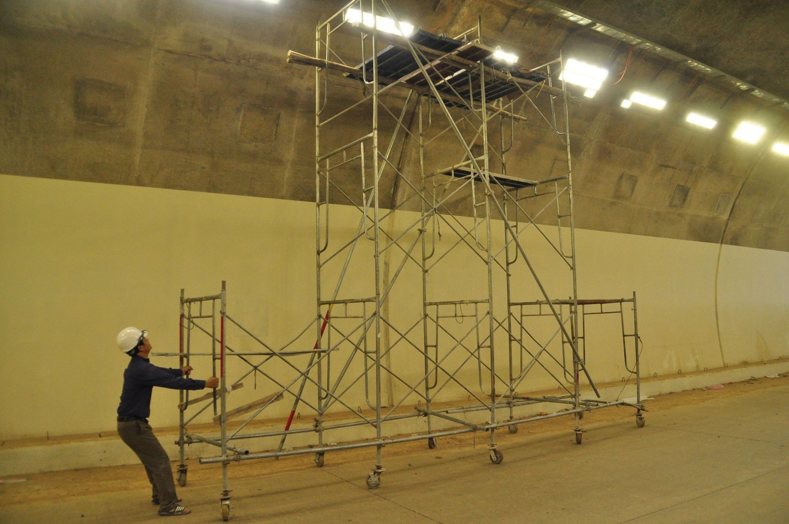 Nhằm tránh thay đổi ánh sáng đột ngột, gây tai nạn, hầm được bố trí đầy đủ các loại đèn led công suất lớn, cân bằng ánh sáng trong và ngoài hầm. Đơn vị thi công đang lắp đặt hệ thống đèn led cao áp ở trong hầm.