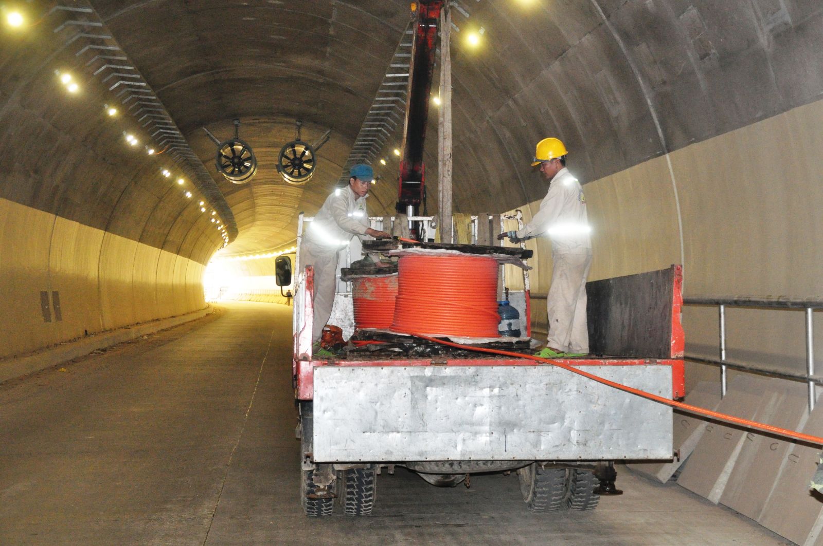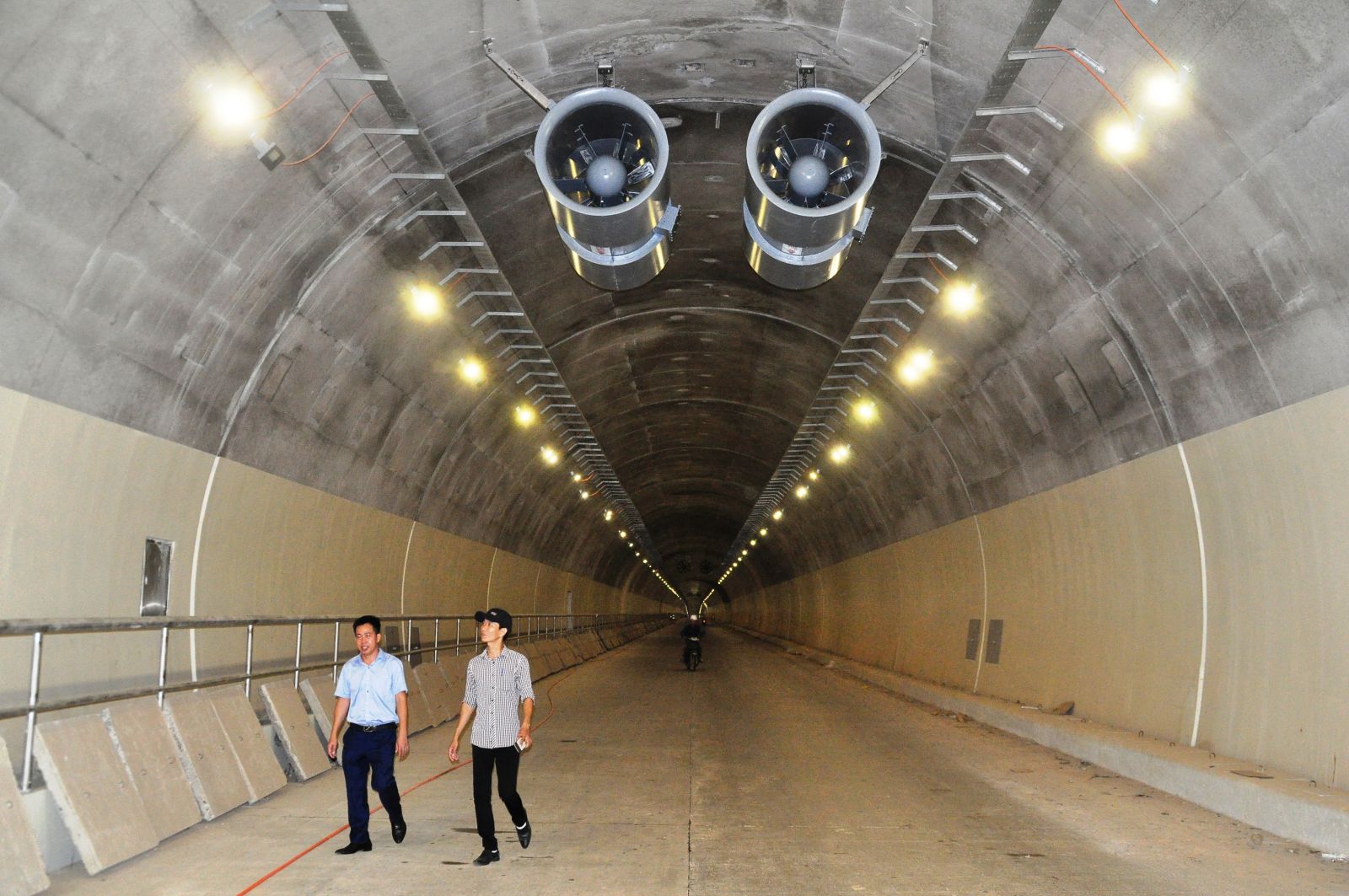 Cùng song song với đó là hệ thống điện chiếu sáng và thông gió cơ bản đã thi công xong. Hệ thống thông gió của hầm được bố trí với 24 máy quạt phản lực công suất 33Kw chia cho 2 ống hầm.
