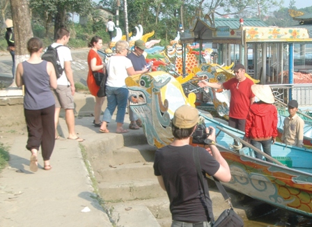 Thuyền du lịch trên sông Hương đưa đón khách tham quan chùa Thiên Mụ