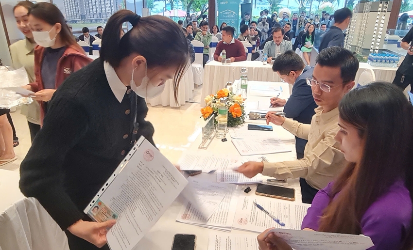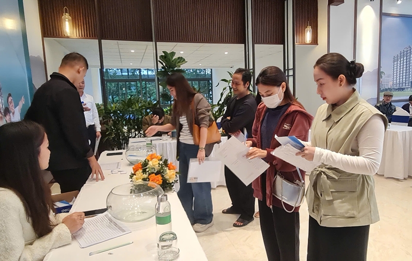 | Khách hàng bốc thăm vị trí mua NOXH tại Dự án khu phức hợp Thủy Vân |