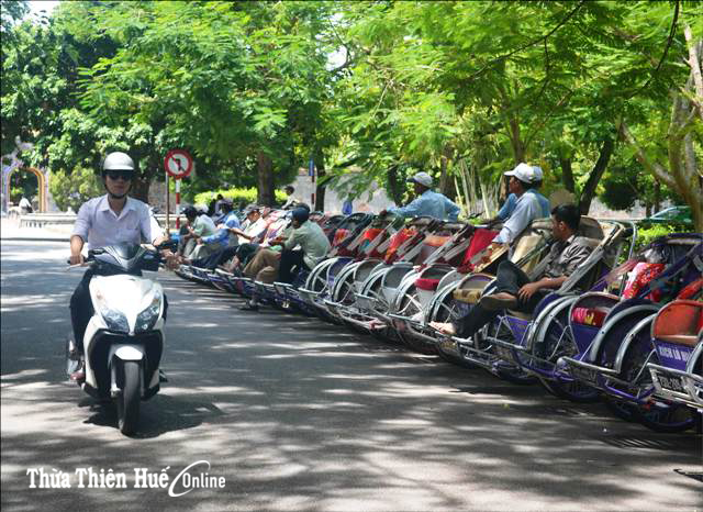Xích lô đỗ ngay ngắn trên đường Đinh Công Tráng (phường Thuận Thành, TP. Huế)