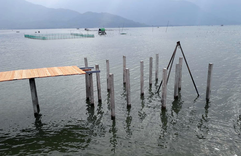 HNN.VN - Dù không xin phép mới và trong giấy phép xây dựng cũ cũng không có hạng mục cầu đi bộ trên đầm Lập An, nhưng Nhà hàng Bé Thân (tổ dân phố Loan Lý, thị trấn Lăng Cô, Phú Lộc) vẫn đóng cọc bê tông xuống đầm để xây dựng cầu trái quy định.