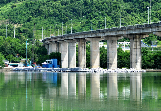 Đường công vụ phục vụ thi công cầu Hải Vân trên đầm Lăng Cô