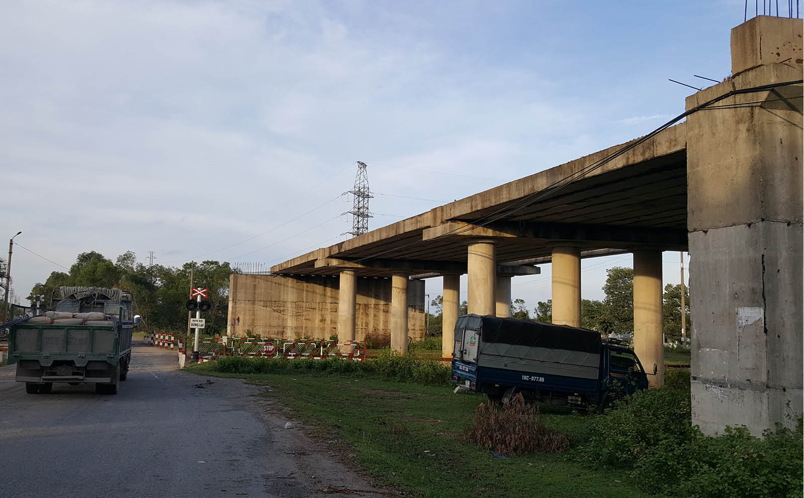 Cầu vượt đường sắt trên tuyến Phong Điền-Điền Lộc do thiếu vốn nên đã dừng thi công trong nhiều năm qua