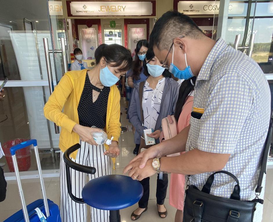 Hành khách đến/đi tại Cảng HKQT Phú Bài được kiểm tra giám sát y tế và sát khuẩn phòng dịch COVID-19